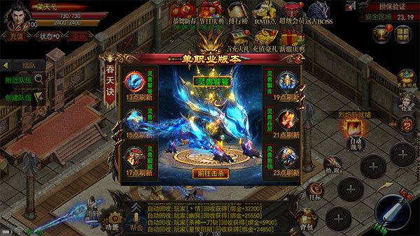 极具特色的帮会城战玩法。沙城PK,争夺全服第一帮会的头衔!胜利者将获得专属头衔,专属帮会副本、活动以及令人羡慕的奖励!