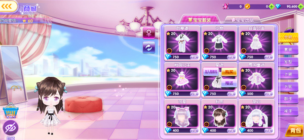 点击宝宝界面商城按钮可以进入宝宝商城为宝宝购买发型、服装、鞋子等。
