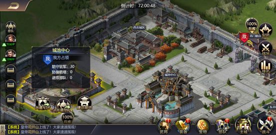 内城中总共分为五个区域,在夺点战斗中也有很多的策略性。如游击战、围攻战等。点击每个区域查看守军部队的数量,攻击守军较少的点位。等看到敌人大军攻来势必又有其他点位守军空虚,再迅速转移去攻击另一个点位。