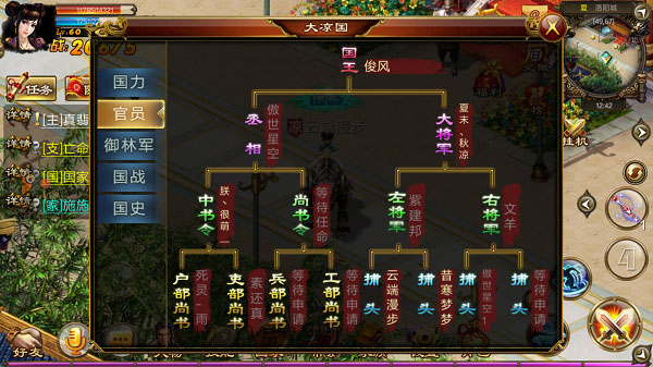 在新征战,六国国家官员都是由玩家担任。六国都有官员体系如下: