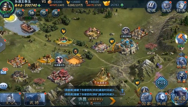 玩家可以在游戏中收集诸多三国名将进行培养,并率领麾下大军参与国战,攻城略地,在乱世中建立属于自己的势力!