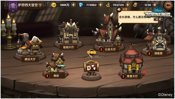 玩家可以在公会商店消耗公会贡献购买英雄成长所需的强化材料。在建筑大厅提升商店等级,可以购买更多种类的资源。需要一提的是公会商店出售的商品是固定的,可消耗钻石对公会商店中的物品购买次数进行重置,提升VIP等级可以获得更多的重置次数。