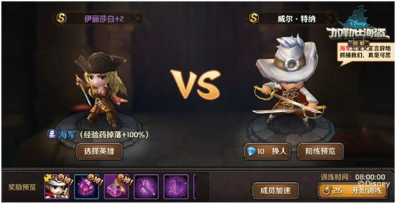 训练营每天会出现一位陪练英雄,与其进行训练后获得奖励。根据陪练所属的阵营,选择合适阵营的英雄(有克制角标的英雄)参加训练会获得更多的奖励。陪练可以手动更换,有可能刷出S级英雄做陪练。