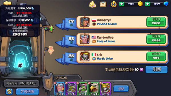 有经济能力的话可以购买月卡,挑战次数+5的收益还是挺不错的。矿山升级对玩家等级有要求,前期多升级卡牌才能提升玩家等级。矿山升级和保级都有具体的需求,可以根据自己的具体实力调整。另外在矿山里的战斗是不能手动的,因此自动战斗时的阵容也要配一套,前期上品质高的,中后期可以参考下别人的阵容。