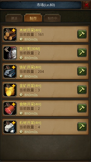 (2)功能:消耗时间和部分资源,制作可以在特定时间内增加特定资源的物品。