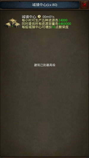 (1)城镇中心:在城内空地块上建造,建造需消耗资源,建造有等待时间,消耗钻石可以秒掉等待时间,升级&建造建筑等待过程中需占用1个空间,空间=建筑位,升级资源不足时,允许直接使用钻石替代资源进行升级操作。