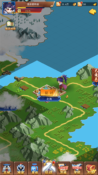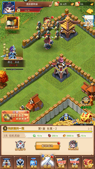 1、登录游戏看到的的主界面就已经很清晰了,下方是主城、阵容、背包、征战、历练、军团等