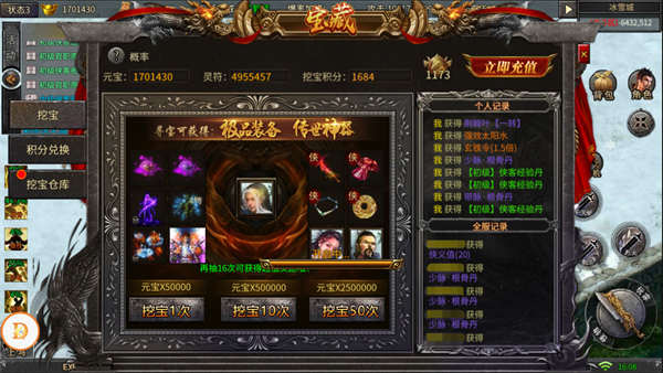 玩家能够通过激战BOSS或者在宝藏中消耗元宝获取(如图一)