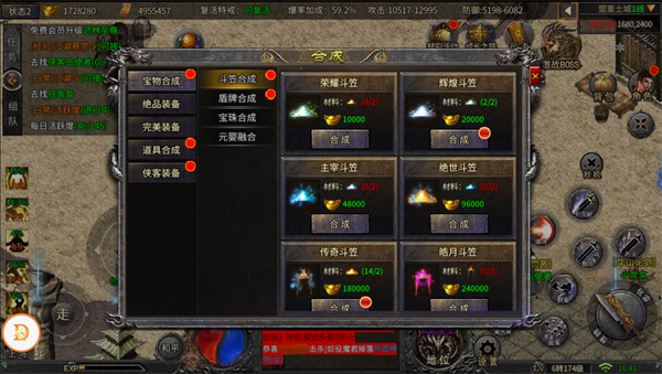斗笠、护盾、治疗宝珠、元婴、绝品装备、完美装备、侠客装备、经验丹、转生材料、都能够合成(如图二)!