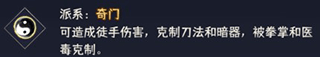 可造成兵刃伤害,克制剑法和医毒,被刀法和奇门克制。