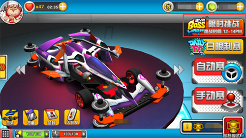 6、等你基础装备有了以后,开始练手动图,跑出来厨师和机器人boss!一定要跑出来,很有用!厨师可以恢复电量和耐久,机器人满级可以前虫洞车位,提高成绩! (每个boss人物都对应一个车,后期可以跑跑车的碎片,然后合成,比如 超极速ss,花仙号等等)