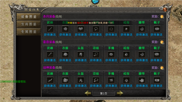 6、左上角图鉴收集中我们可以看到,凑齐一套装备有额外加成和奖励,全套凑齐有时候比你每件都是单独的高品质装备更厉害哦。