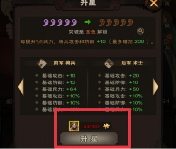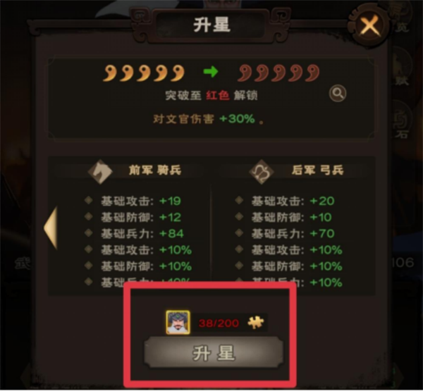 传奇武将每颗星5积分