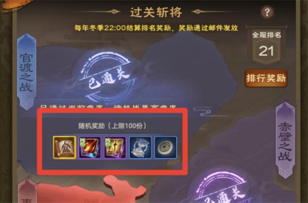 每章第三关的奖励为大量征讨币,招募令以及随机武将技能包。