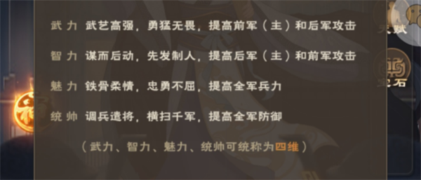 武将的武力、智力、魅力、统帅,统称为四维。那四维对于武将有什么影响吗?