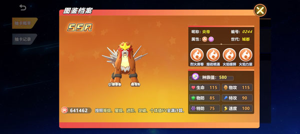 简介:炎帝拥有橘红色的毛发,强壮的四肢上戴着铁环。它的脸颊上长有红色六芒星状的结构,额头上嵌有三叶草一般的金黄色发壳。它的背后还有飘逸的白烟。
