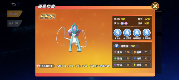简介:水君的身体是蓝色的,身上有着白色的块状花纹。它有着蓝色宝石一样的头饰和两条白色的飘带似的尾巴。