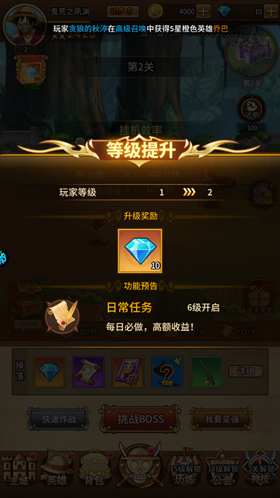 6、而获得的奖励可以用来升级角色来提升我们战斗团的实力。
