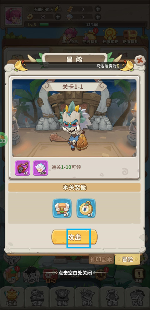 6、点击攻击开始闯关。