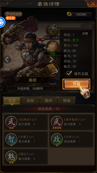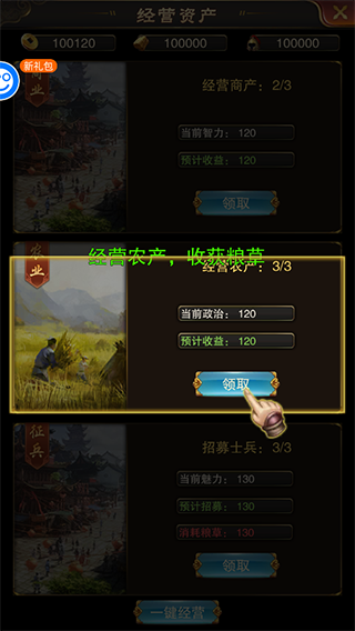 ★上线福利:VIP5、元宝红包648元*1、100万银两、100万粮草、100万士兵