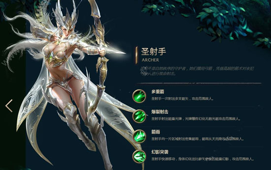 圣射手是一个远程输出角色,拥有最远的攻击距离和极具穿透力的物理攻击,所有的技能都是范围伤害。