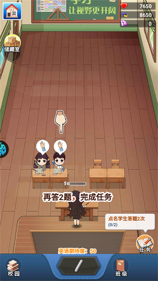 5、随后就是让他们回答问题完成任务获得奖励,你需要做的就是招募各科教师、培养全能学生,打造明星校园