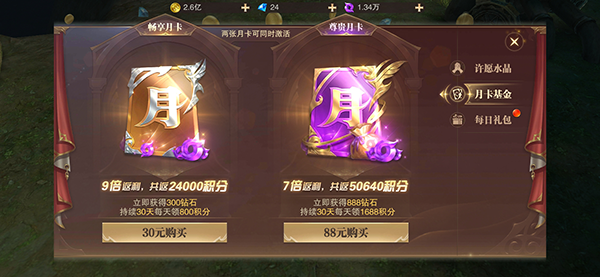 建议各位玩家可以购买投资里的月卡基金,两个月卡是可以叠加的,每天可以获得很多额外的积分。