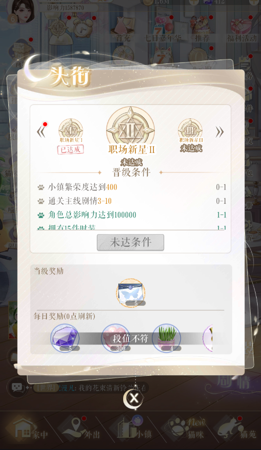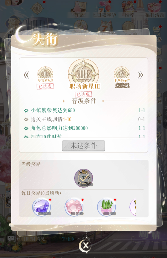 小主需要完成当前头衔任务才可升级头衔,每次升级头衔后都可获得永久晋升奖励,每个头衔等级晋升奖励只能获取一次。