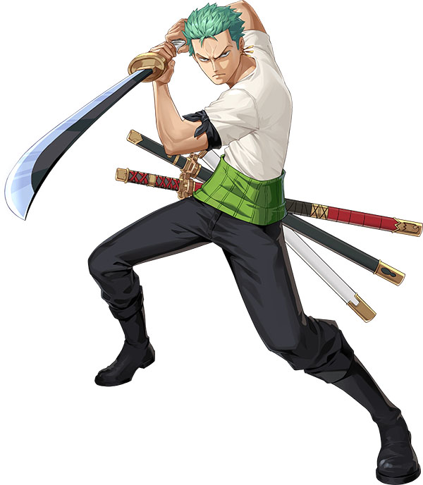 来自东海东海霜月村的年轻剑士。为了实现与童年伙伴古伊娜的约定,立志成为世界第一的大剑豪。其用双手加嘴所使出的三刀流剑技和以及强大的气场令对手望而生畏。为实现世界第一剑豪的梦想,奔赴声名赫赫的猛者云集的新世界!