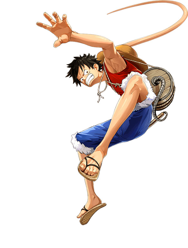 人称“草帽小子”路飞。梦想是找到世界第一的宝藏、成为航海王!!小时候吃下橡皮之果变成了橡皮人,普通的打击和电击对他来说都是无效的。通过橡皮的反作用力打出的一击,力量和速度都十分超群!!是个大胃王,非常贪吃,尤其喜欢吃肉,经常偷吃山智放在梅利号冰箱里的食物。平时偶尔还会哼一些奇怪的歌。虽然经常会犯傻,但实际是一位心系同伴的好船长,深得伙伴们的信任。