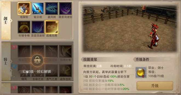 大家在选择剑士为自己的职业之后,就可以参照上述的思路来进行加点,通过加点之后我们可以让角色在转职之前有一个合适的过渡期,这样可以获得一个相对舒服的游戏体验,在130级之后就可以进行首次转职。