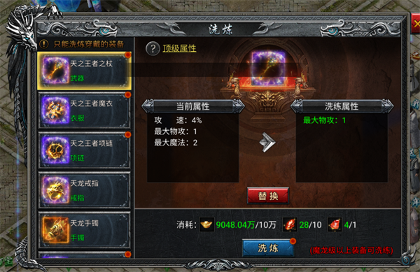 2、特戒系统:四种稀有特戒,提升对应特戒增长对应属性,PK独占一头!