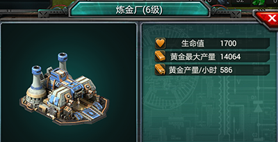 黄金:用于建筑建造和升级、部队训练等。主要是炼金厂和石油资源基地生产的,也可以通过攻击敌人的基地获取。炼金厂是玩家的建造的建筑,可以通过升级提高产量。