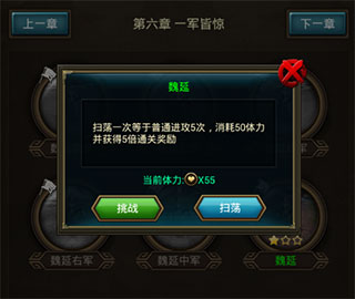 历史名将,依次登场,需要你用武力征服他们。这不是常见的卡牌游戏,武将需要靠“打”。